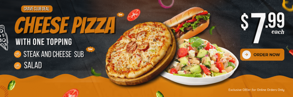 BUY LARGE CHEESE PIZZA AND SMALL APPETIZER $18.99+TAX